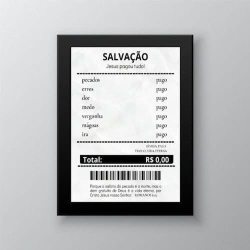 Quadro decorativo evangélico recibo 33x24cm Moldura: madeira branca Informações do produto tire todas as suas dúvidas no descritivo abaixo: decoração para quarto, sala, cozinha, escritório, área gourmet e muito mais. Chega de paredes vazias medidas - cada peça tem 33x24cm a4 . Material do papel - papel fotográfico brilhante de altíssima resolução acabamento - todos os quadros são acompanhados de uma película de acetato para proteção da imagem. - os quadros são embalados de forma segura com plástico bolha com camada dupla de acordo com o tamanho dos quadros. - de 3 meses. Meu quadro chegou. Como posso fixá-lo Você precisa apenas de um martelo e um prego, pois os quadros já vão acompanhados de penduradores. Esta é a forma mais indicada. Caso prefira, você pode utilizar uma fita dupla face neste caso, sugerimos de alta qualidade para evitar que descole e seu quadro caia . Como posso limpar meu quadro A limpeza é feita como um móvel comum da sua casa. Apenas um pano seco ou espanador são suficientes para tal