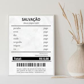 Quadro decorativo evangélico recibo 45x34cm Moldura: madeira preta Informações do produto tire todas as suas dúvidas no descritivo abaixo: decoração para quarto, sala, cozinha, escritório, área gourmet e muito mais. Chega de paredes vazias. Medidas - cada peça tem 45x34cm a3 . Material do papel - papel fotográfico brilhante de altíssima resolução acabamento - todos os quadros são acompanhados de uma película de acetato para proteção da imagem. - os quadros são embalados de forma segura com plástico bolha com camada dupla de acordo com o tamanho dos quadros. - de 3 meses. Meu quadro chegou. Como posso fixá-lo Você precisa apenas de um martelo e um prego, pois os quadros já vão acompanhados de penduradores. Esta é a forma mais indicada. Caso prefira, você pode utilizar uma fita dupla face neste caso, sugerimos de alta qualidade para evitar que descole e seu quadro caia . Como posso limpar meu quadro A limpeza é feita como um móvel comum da sua casa. Apenas um pano seco ou espanador são suficientes para tal