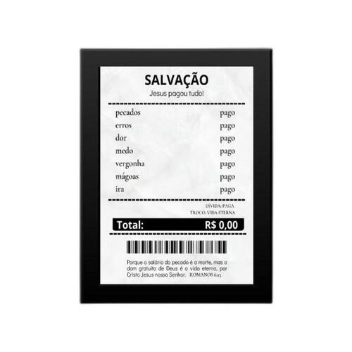 Quadro decorativo evangélico recibo 45x34cm Moldura: madeira branca Informações do produto tire todas as suas dúvidas no descritivo abaixo: decoração para quarto, sala, cozinha, escritório, área gourmet e muito mais. Chega de paredes vazias. Medidas - cada peça tem 45x34cm a3 . Material do papel - papel fotográfico brilhante de altíssima resolução acabamento - todos os quadros são acompanhados de uma película de acetato para proteção da imagem. - os quadros são embalados de forma segura com plástico bolha com camada dupla de acordo com o tamanho dos quadros. - de 3 meses. Meu quadro chegou. Como posso fixá-lo Você precisa apenas de um martelo e um prego, pois os quadros já vão acompanhados de penduradores. Esta é a forma mais indicada. Caso prefira, você pode utilizar uma fita dupla face neste caso, sugerimos de alta qualidade para evitar que descole e seu quadro caia . Como posso limpar meu quadro A limpeza é feita como um móvel comum da sua casa. Apenas um pano seco ou espanador são suficientes para tal Marca: Não Informado