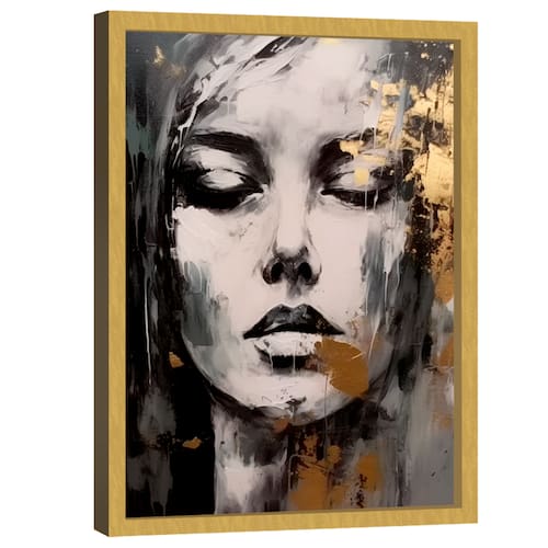 Quadro Decorativo Expressão Feminina Moldura Dourada - 118x78cm -