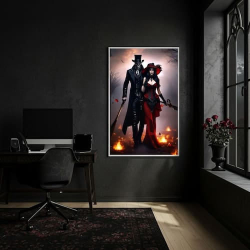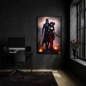 Quadro Decorativo Exu Caveira e Pomba Gira - 70x50cm - Cor: Moldura Branca