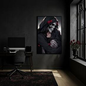 Quadro Decorativo Exu Caveira E Pombagira - 70x50cm - Cor: Moldura Branca