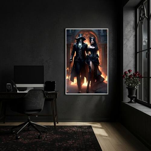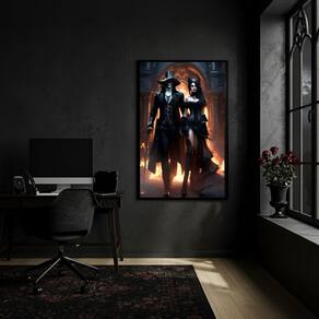 Quadro Decorativo Exu e Pomba Gira Entidades - 70x50cm - Cor: Moldura Branca