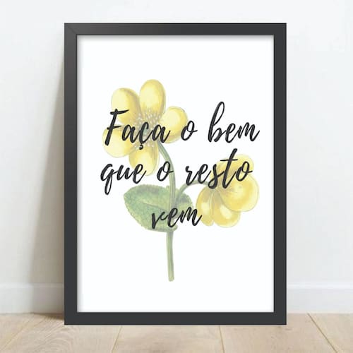 Quadro Decorativo Faça o bem que o resto vem - Moldura e Vidro A4 Wg molduras Características: Cor da moldura: preta Tamanho total: 24x33 sendo a moldura de 1,5 cm de cada lado Vidro: incolor 0,02 mm Todos os quadros acompanham pendurador acoplado, o acabamento do quadro é feito em fita gomada para garantir maior durabilidade e acabamento na peça. Imagem com alta resolução, sendo ela impressa em papel fotográfico. Marca: Wg Molduras