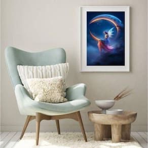 Quadro Decorativo Fada Com Lua - 60X48Cm