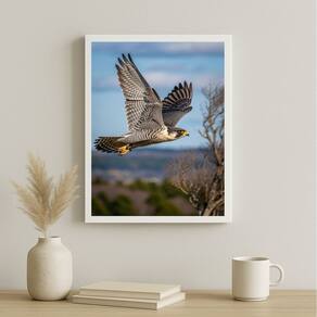 Quadro Decorativo Falcão Peregrino - Em Voo 24x18cm - Cor: Moldura preta