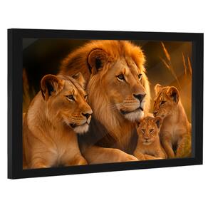 Quadro Decorativo Família Celestial de Leões Moldura Preta e Vidro - 180x105cm -