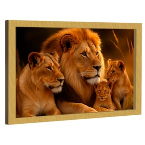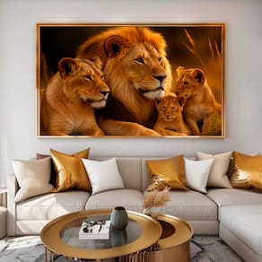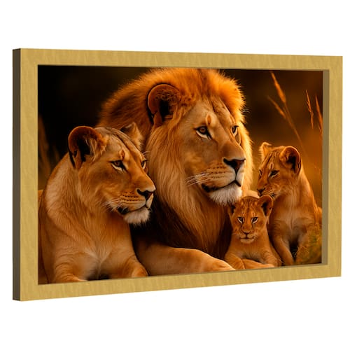 Quadro Decorativo Família Celestial de Leões Moldura Dourada - 84x54cm -