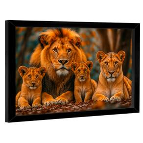 Quadro Decorativo Família De Leões Centrada Moldura Dourada - 84x54cm -