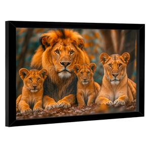 Quadro Decorativo Família De Leões Centrada Moldura Dourada e Vidro - 180x105cm -