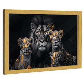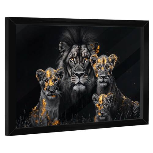 Quadro Decorativo Família de Leões Dark Moldura Preta e Vidro - 180x105cm -