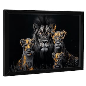 Quadro Decorativo Família de Leões Dark Moldura Dourada e Vidro - 118x78cm -