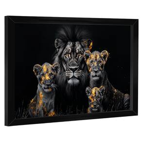 Quadro Decorativo Família de Leões Dark Moldura Preta - 84x54cm -