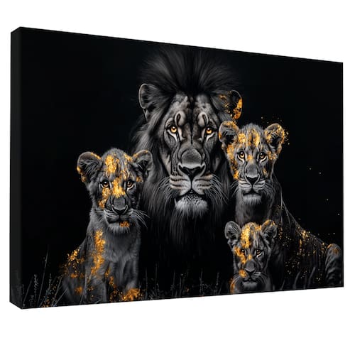Quadro Decorativo Família de Leões Dark Borda Infinita - 180x105cm -
