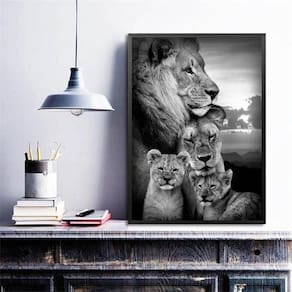 Quadro decorativo família de leões- preto e branco 24x18cm Moldura: madeira branca Informações do produto tire todas as suas dúvidas no descritivo abaixo: decoração para quarto, sala, cozinha, escritório, área gourmet e muito mais. Chega de paredes vazias medidas - cada peça tem 24x18cm a5 . Material do papel - papel fotográfico brilhante de altíssima resolução acabamento - todos os quadros são acompanhados de uma película de acetato para proteção da imagem. - os quadros são embalados de forma segura com plástico bolha com camada dupla de acordo com o tamanho dos quadros. Garantia - garantia de 3 meses. Meu quadro chegou. Como posso fixá-lo Você precisa apenas de um martelo e um prego, pois os quadros já vão acompanhados de penduradores. Esta é a forma mais indicada. Caso prefira, você pode utilizar uma fita dupla face neste caso, sugerimos de alta qualidade para evitar que descole e seu quadro caia . Como posso limpar meu quadro A limpeza é feita como um móvel comum da sua casa. Apenas um pano seco ou espanador são suficientes para tal Ean: 7898701077543
