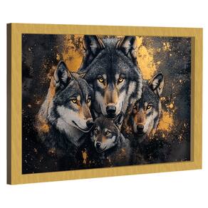 Quadro Decorativo Família de Lobos Moldura Dourada - 84x54cm -