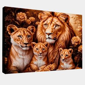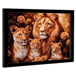 Quadro Decorativo Família Felina Moldura Dourada - 118x78cm -