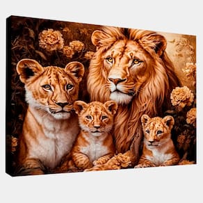 Quadro Decorativo Família Felina Moldura Dourada - 60x40cm -