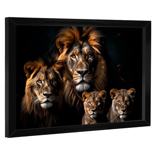 Quadro Decorativo Família Majestosa de Leões Moldura Preta - 118x78cm -