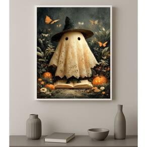 Quadro Decorativo Fantasminha Fofo 33x24cm - com vidro - Cor: Moldura branca