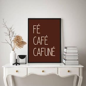 Quadro decorativo fé café cafuné - marrom 33x24cm - com vidro Cor: moldura branca Informações do produto tire todas as suas dúvidas no descritivo abaixo: decoração para quarto, sala, cozinha, escritório, área gourmet e muito mais. Chega de paredes vazias medidas - cada peça tem 33x24cm a4 . Material do papel - papel fotográfico brilhante de altíssima resolução acabamento - todos os quadros são acompanhados de vidro para proteção da imagem. - moldura em madeira maciça na cor preta ou branca conforme produto escolhido e pendurador . - os quadros são embalados de forma segura com plástico bolha com camada dupla de acordo com o tamanho dos quadros. - de 3 meses. Meu quadro chegou. Como posso fixá-lo Você precisa apenas de um martelo e um prego, pois os quadros já vão acompanhados de penduradores. Esta é a forma mais indicada. Como posso limpar meu quadro A limpeza é feita como um móvel comum da sua casa. Apenas um pano seco ou espanador são suficientes para tal