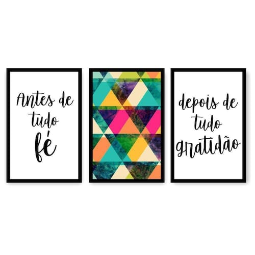 Dê adeus para as paredes vazias e monótonas Os quadros decorativos da Império dos Quadros são grandes aliados quando o assunto é decoração. Quadro Decorativo Fé Gratidão Rose 3P Sem Moldura 115x57 Sala Quarto é impresso em equipamento de alta resolução (Full HD), em vinil fosco e aplicados em MDF de 3MM (com moldura) e 6MM (sem moldura).