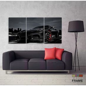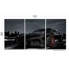 Quadro Decorativo Ferrari Preta 120x60 3 peças em tecido