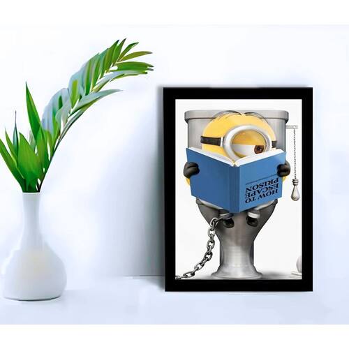 Adicione um toque de humor e diversão ao seu espaço com este encantador quadro decorativo dos Minions. Ideal para salas e quartos, este quadro apresenta os Minions em uma situação engraçada, trazendo um ar descontraído e alegre ao ambiente.
