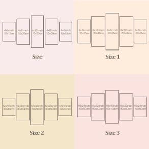 Peças menores: 25x40 cm | Peças médias: 25x51 cm | Peça central: 25x63 cm