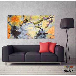 Quadro Decorativo Flor Abstrato 3 pçs 120x60 sala quarto