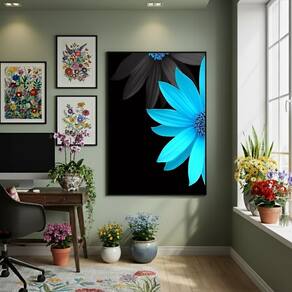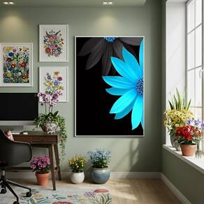 Quadro Decorativo Flor Azul Artificial 70x50cm Mold Branca