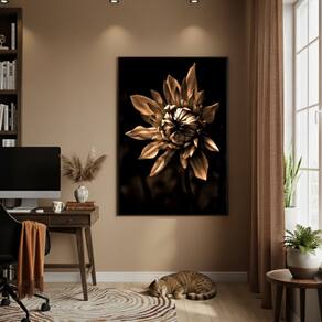 Quadro Decorativo Flor Bronze 70x50cm Mold Branca