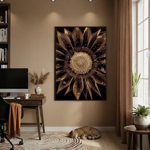Quadro Decorativo Flor De Bronze 70x50cm Mold Preta