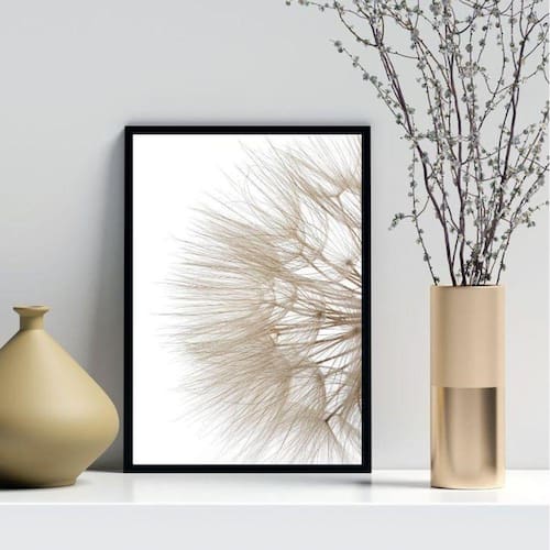 Quadro decorativo flor dente de leão branca 33x24cm - com vidro Moldura: madeira preta Informações do produto tire todas as suas dúvidas no descritivo abaixo: decoração para quarto, sala, cozinha, escritório, área gourmet e muito mais. Chega de paredes vazias medidas - cada peça tem 33x24cm a4 . Material do papel - papel fotográfico brilhante de altíssima resolução acabamento - todos os quadros são acompanhados de vidro para proteção da imagem. - moldura em madeira maciça na cor preta ou branca conforme produto escolhido e pendurador . - os quadros são embalados de forma segura com plástico bolha com camada dupla de acordo com o tamanho dos quadros. Garantia - garantia de 3 meses. Meu quadro chegou. Como posso fixá-lo Você precisa apenas de um martelo e um prego, pois os quadros já vão acompanhados de penduradores. Esta é a forma mais indicada. Como posso limpar meu quadro A limpeza é feita como um móvel comum da sua casa. Apenas um pano seco ou espanador são suficientes para tal Ean: 7897498750783