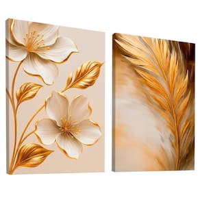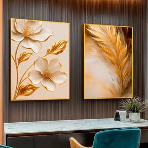 Quadro Decorativo Flor E Folha Dourada Duo Quadro Decorativo Flor e Folha Dourada Duo Moldura Preta - 84x54cm - Especificações