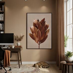 Quadro Decorativo Flor Marrom Chocolate 70x50cm Mold Branca