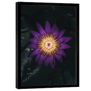 Quadro Decorativo Flor Nymphaea Caerulea Moldura Branca e Vidro - 84x54cm -