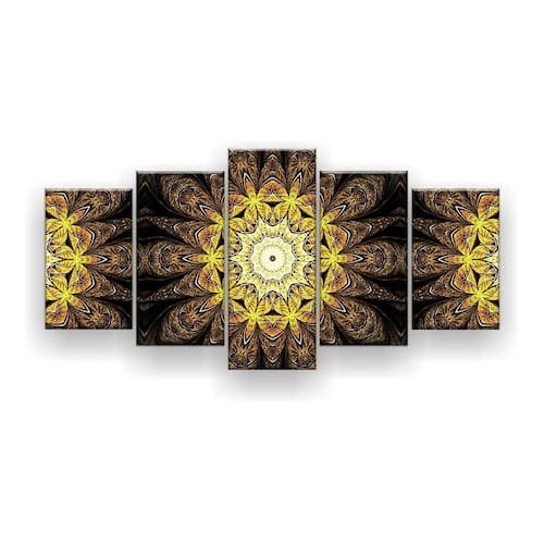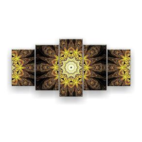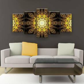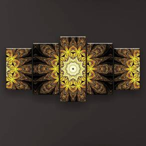 Quadro Decorativo Flor Simétrica Amarelo Ouro 129x61 Sala