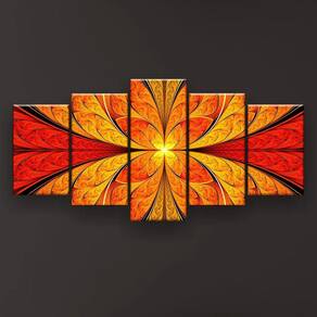 Quadro Decorativo Flor Simétrica Vitral Laranja 129x61 Sala