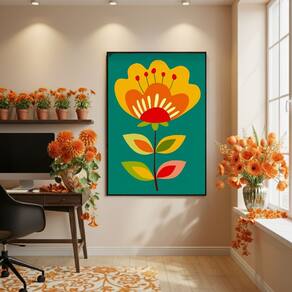 Quadro Decorativo Flor Tons De Laranja 70x50cm Mold Branca