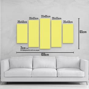 QUADRO DECORATIVO 5 PARTES Decorar a casa é sempre um momento pra lá de especial O segredo da decoração é que nem tudo depende de dinheiro. É possível fazer uma bela decoração barata na sua casa, gastando pouco. A RCS Decorações proporciona isso á você TAMANHO & INSTALAÇÃO Tamanho total: 108cm comprimento X 65 cm altura 2 peças laterais: 20x40 cm 2 peças laterais: 20x55 cm 1 peça Central: 20x65 cm Espaçamento entre as peças: 2 cm A instalação é bem simples, enviamos com fita dupla face para melhor fixação Não precisa furar a parede . IMPRESSÃO & ACABAMENTO Nossos quadros e placas são impressos em adesivo de alta qualidade, aplicado em MDF com espessura de 6mm. Não necessita de moldura. Ean: 7894903899853