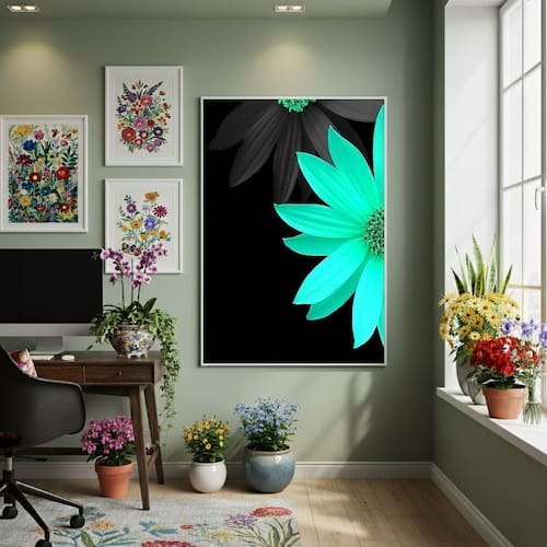 Quadro Decorativo Flor Verde Artificial 70x50cm Mold Branca