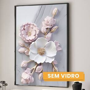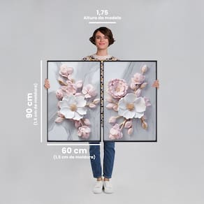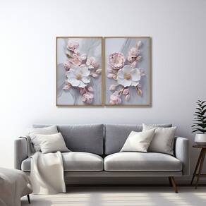 Quadro Decorativo Floral Artístico Modelo Flor de Porcelana com 3 Telas 60x90cm para Sala, Quarto, Banheiro, Escritório, Hall, Hall de Entrada, Estúdio, Salão, Clínica.