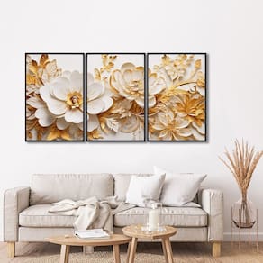 Quadro decorativo floral delicado flores brancas e amarelas com 3 telas cm ou cm para sala, quarto, banheiro, escritório, hall, hall de entrada, estúdio, salão, clínica.Especificações técnicas:modelo: flores bancas e amarelas;material da imagem: papel premium fotográfico de alta qualidade;material da moldura: madeira de reflorestamento revestida;espessura da moldura: 2,7cm de profundidade e 1,5cm frontal;medidas: cm ou cm;acabamento: fita kraft;acompanha: suporte de serrilha para quadros e parafusos.Transforme seu espaço com elegância e sofisticação! Não perca a oportunidade de adquirir o exclusivo quadro decorativo delicado flores brancas e amarelas com 3 telas a um preço incrível!