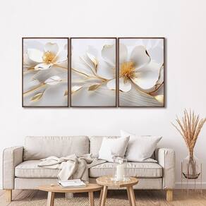 Quadro Decorativo Floral Delicado Magnólias com 3 Telas de Parede para Sala Quarto Escritório 60cm X Marrom