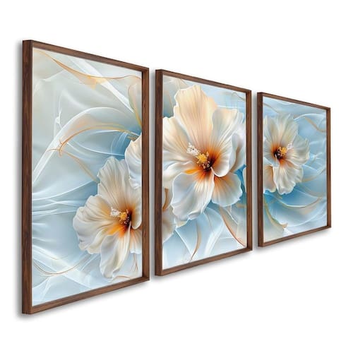 Quadro Decorativo Floral Flor de Hibisco com 3 Telas de Parede para Sala Quarto Escritório 60cm X 90 Marrom