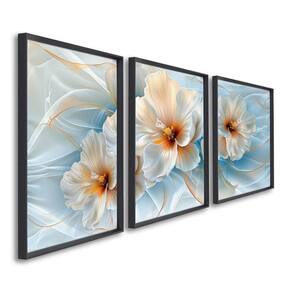 Quadro Decorativo Floral Flor de Hibisco com 3 Telas de Parede para Sala Quarto Escritório 60cm X 90 Preto