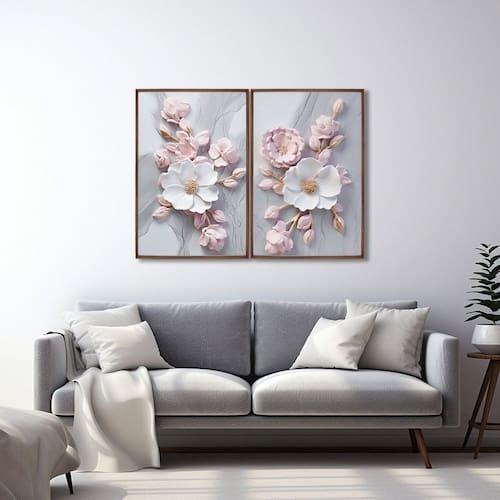 Quadro Decorativo Floral Flor de Porcelana com 2 Telas de Parede para Sala Quarto Escritório 60cm x Marrom