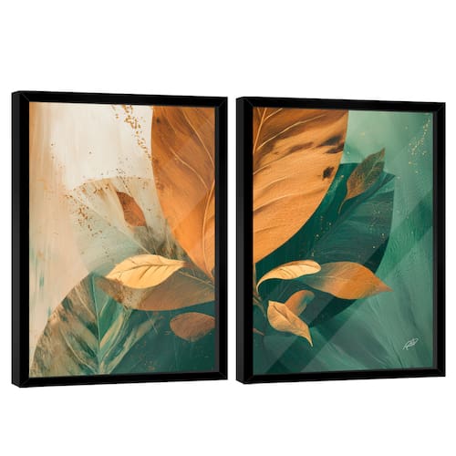 Quadro Decorativo Floral Moderno Duo Moldura Preta e Vidro - 150x100 -