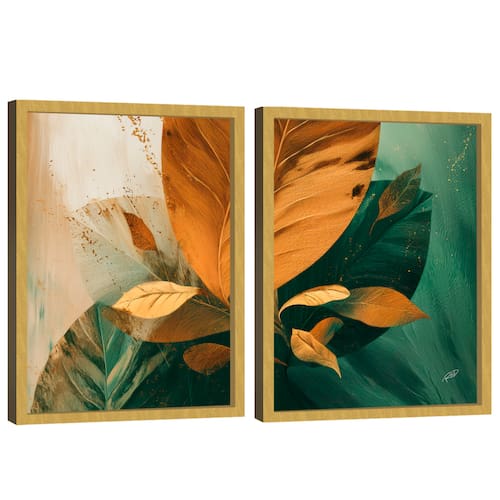 Quadro Decorativo Floral Moderno Duo Moldura Dourada - 60x40 -